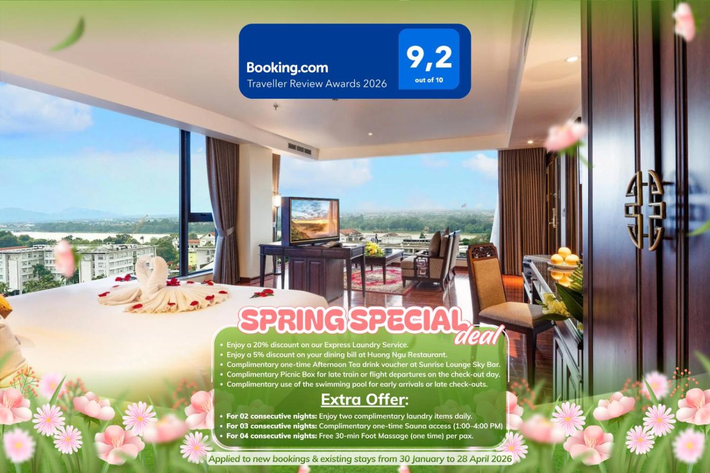The hotel is about 1.2 km from Trang Tien Bridge and 1.3 km from Dong Ba Market. Da Nang International Airport is approximately 80 km away.